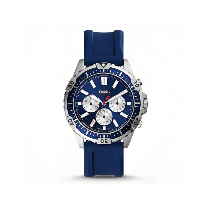 Fossil Garrett Chronograph Blue Dial Blue Rubber Strap Watch for Men - FS5709