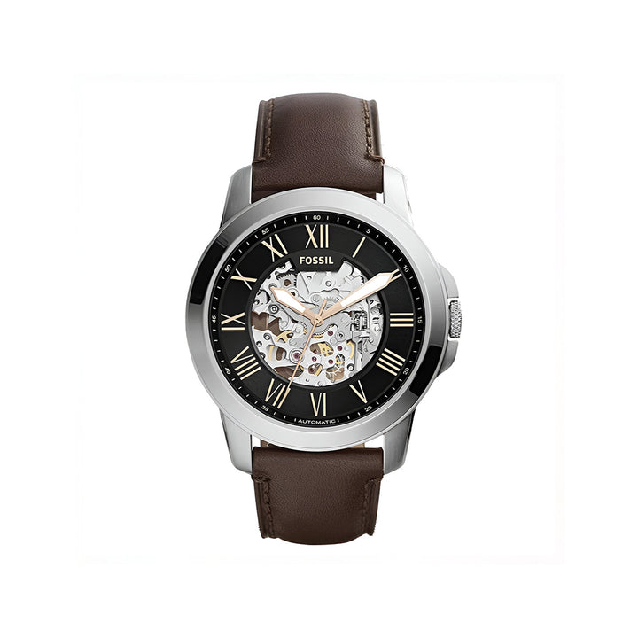 Fossil Grant Automatic Skeleton Black Dial Brown Leather Strap Watch for Men - ME3100