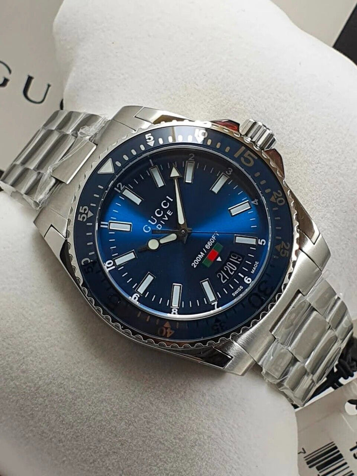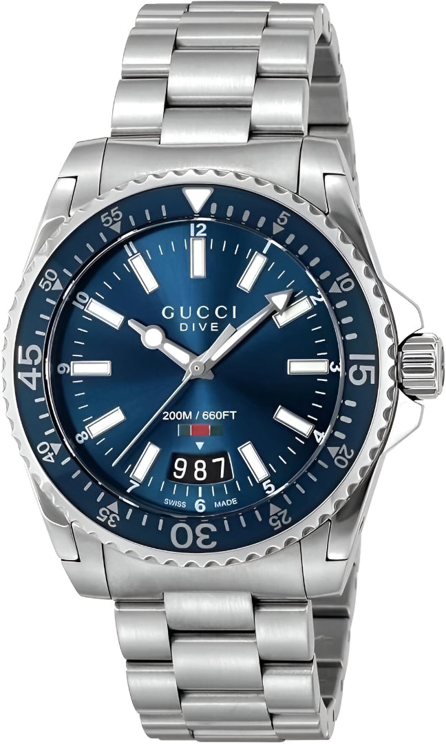 Gucci Dive Quartz Blue Dial Silver Steel Strap Watch For Men - YA136311