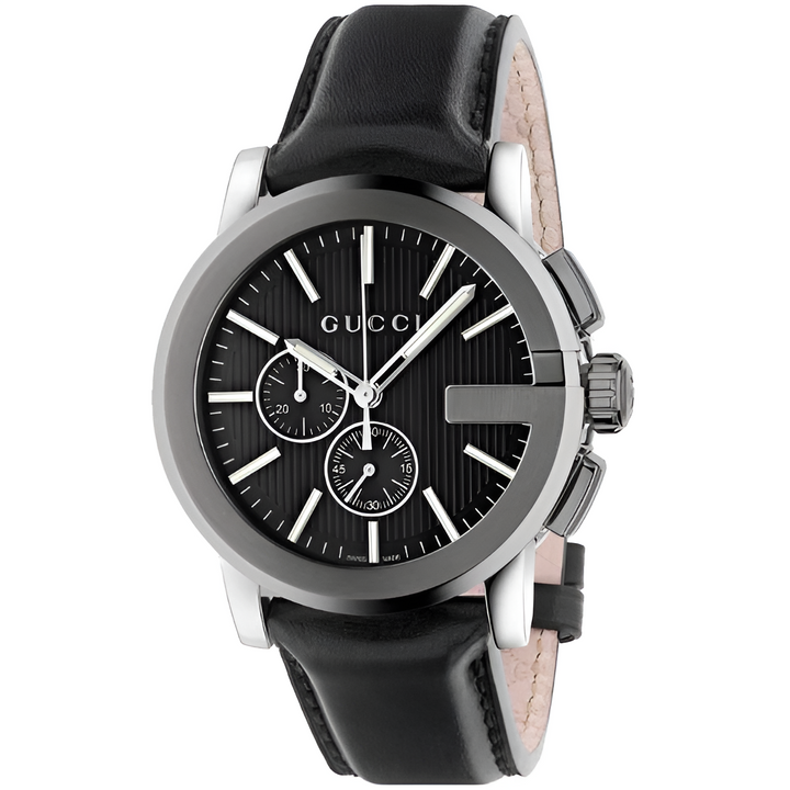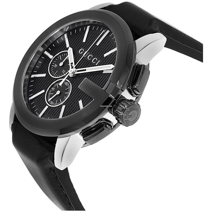 Gucci G Chrono Black Dial Black Leather Strap Watch For Men - YA101205