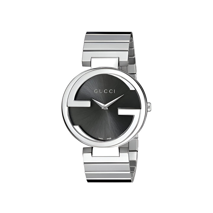 Gucci G Interlocking Black Dial Silver Steel Strap Watch For Women - YA133307