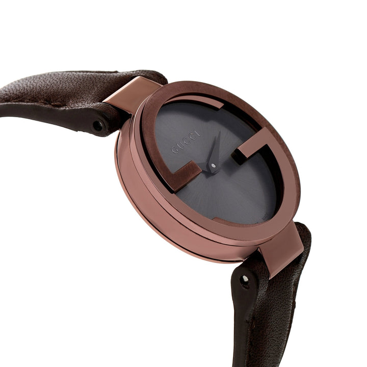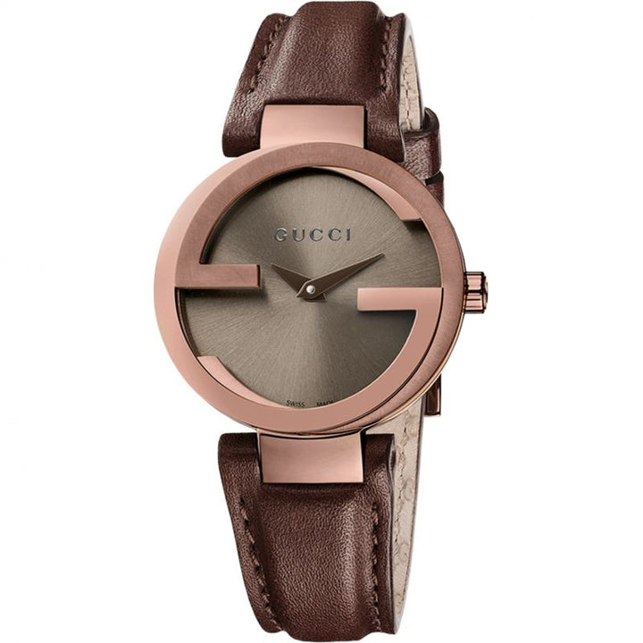 Elevate your style with the Gucci G Interlocking Brown Watch for women! Its luxurious brown leather strap and iconic brown dial showcase the brand's impeccable design. The perfect accessory for any occasion, this watch exudes sophistication and elegance. Add it to your collection today!