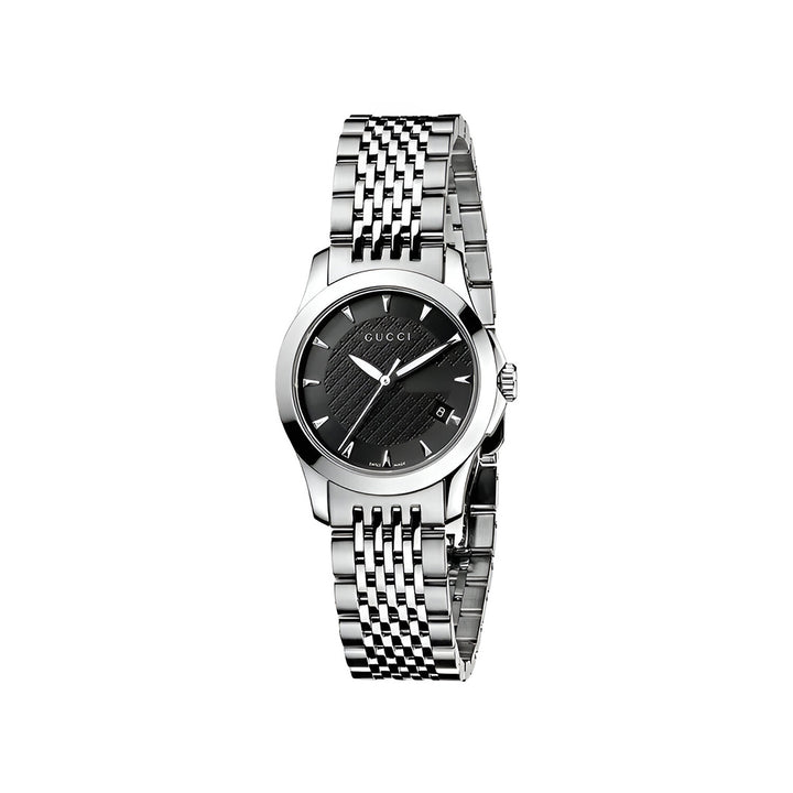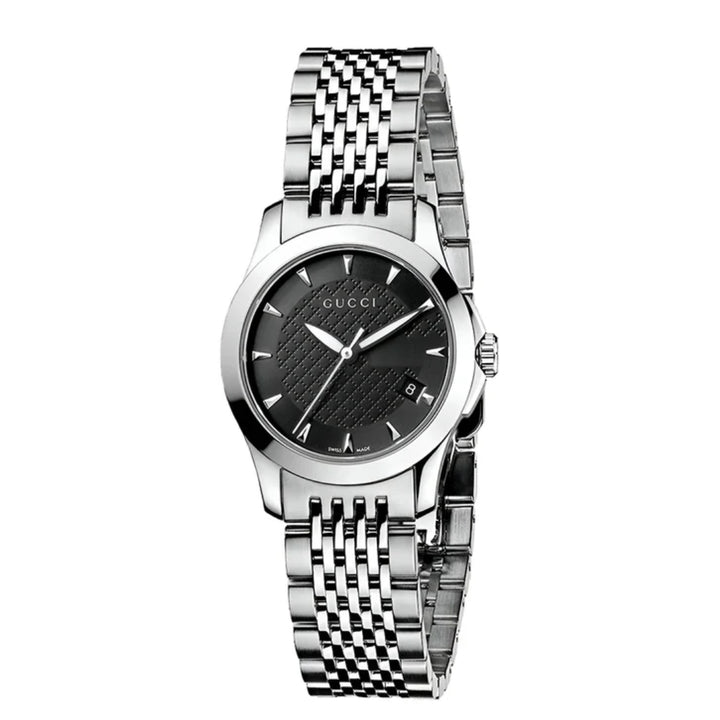 Gucci G Timeless Black Dial Silver Steel Strap Watch For Women - YA126502