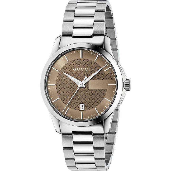 Gucci G Timeless Brown Dial Silver Steel Strap Watch For Men - YA126445