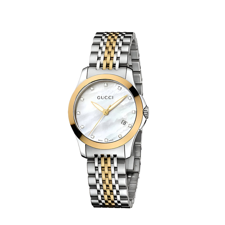 Gucci G Timeless Diamonds Mother of Pearl Dial Two Tone Mesh Bracelet Watch for Women - YA126513