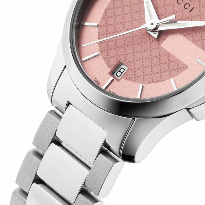 Gucci G Timeless Pink Dial Silver Steel Strap Watch For Women - YA126524