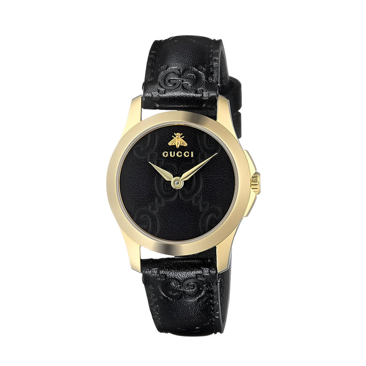 Gucci G Timeless Quartz Black Dial Black Leather Strap Watch For Women - YA126581A