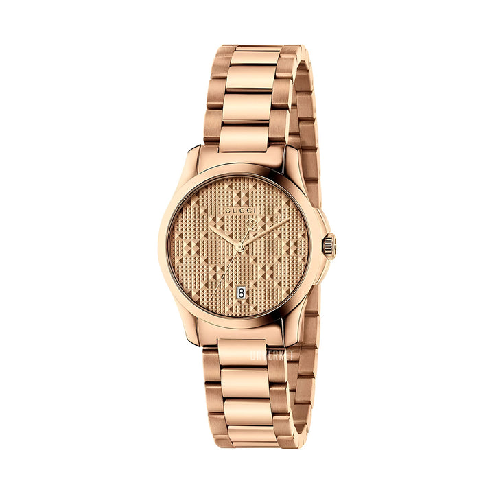 Gucci G Timeless Quartz Rose Gold Dial Rose Gold Steel Strap Watch For Women - YA126567