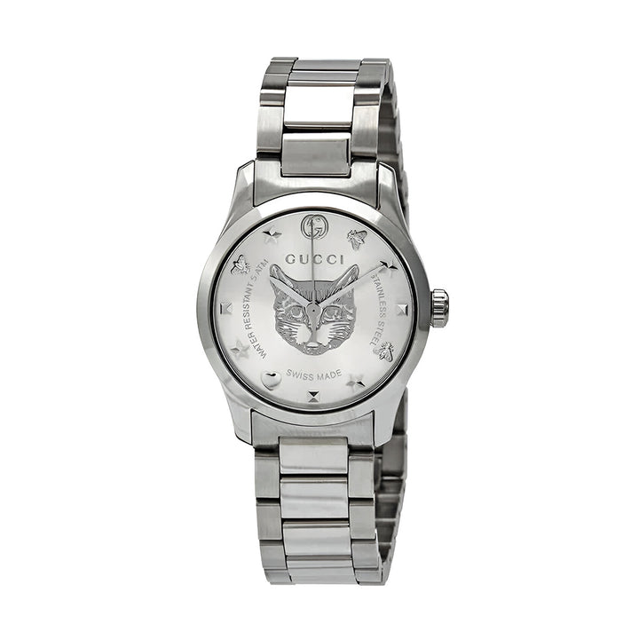 Gucci G Timeless Quartz Silver Dial Silver Steel Strap Watch For Women - YA126595