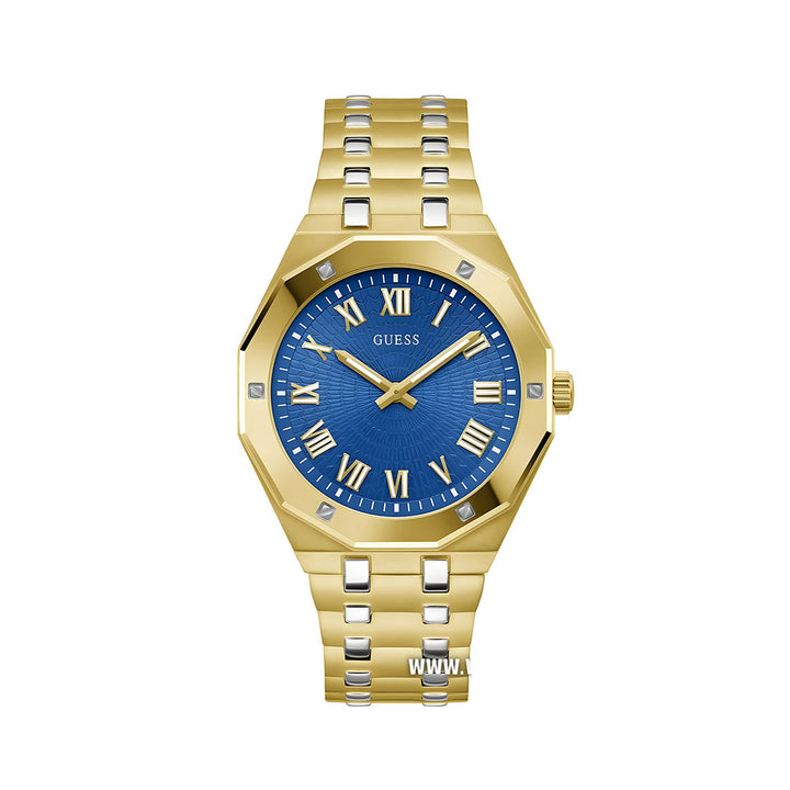Guess Asset Quartz Blue Dial Gold Steel Strap Watch For Men - GW0575G6