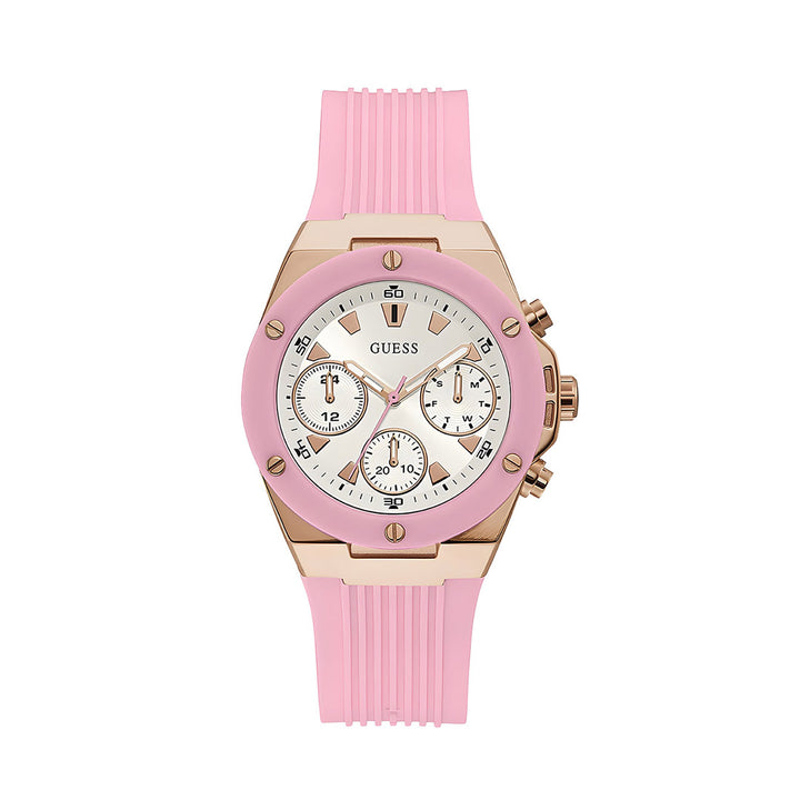 Guess Athena White Dial Pink Rubber Strap Watch For Women - GW0030L4