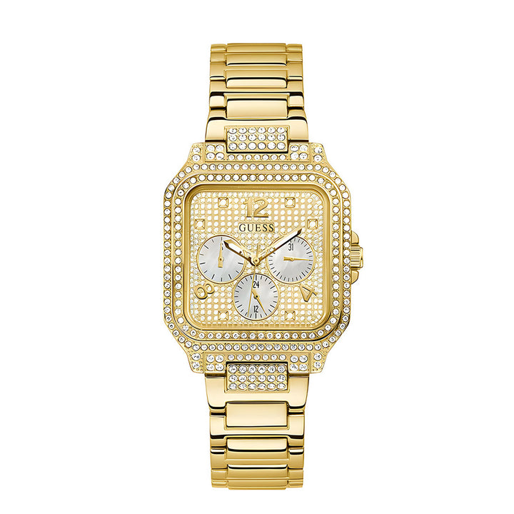 Guess Deco Quartz Crystals Gold Dial Gold Steel Strap Watch For Women - GW0472L2