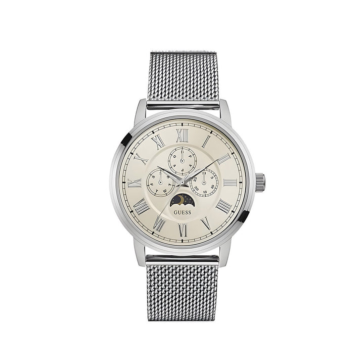 Guess Delancy White Dial Silver Mesh Bracelet Watch for Men - W0871G4