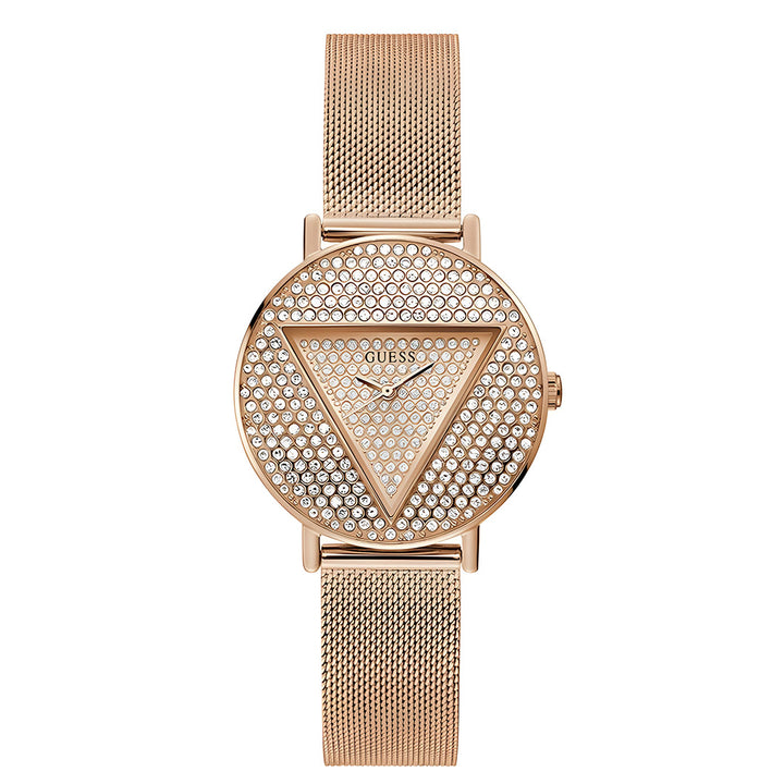 Guess Iconic Diamonds Rose Gold Dial Rose Gold Mesh Bracelet Watch For Women - GW0477L3