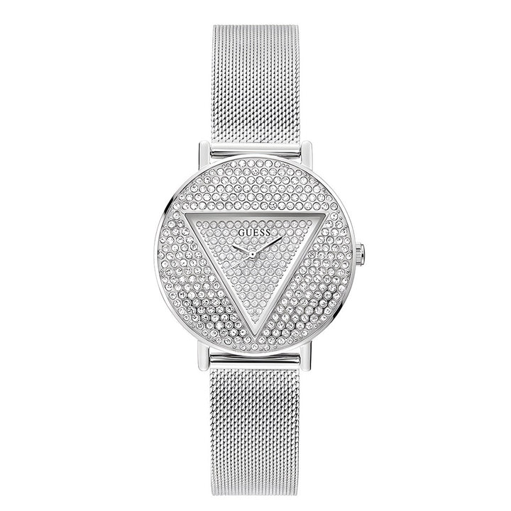 Guess Iconic Diamonds Silver Dial Silver Mesh Bracelet Watch For Women - GW0477L1