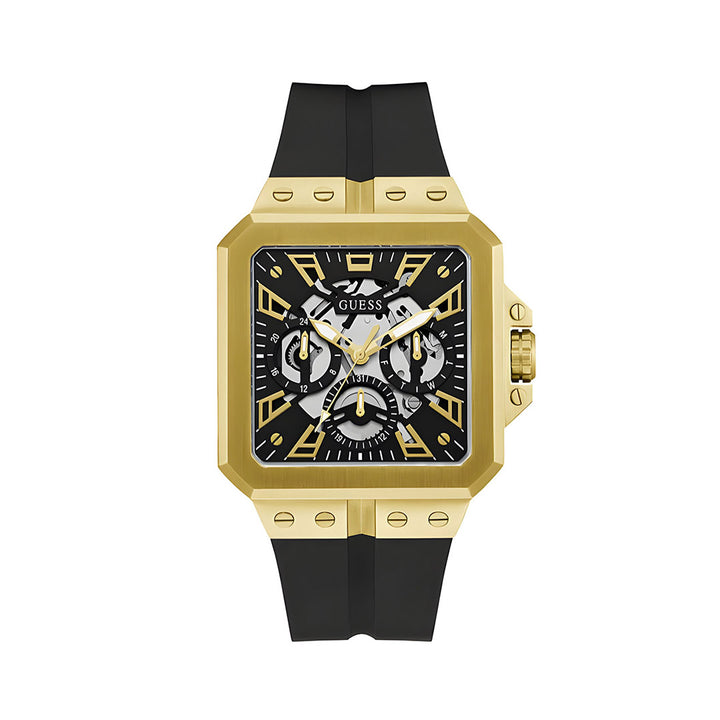 Amaze everyone around you by wearing this men's analog watch from Guess. The black square dial is protected by a mineral glass. It features multifunction and a crown for time adjustment. The silicon strap comes in a black hue that further elevates the look of the timekeeper. Besides, it is completed with a buckle clasp to ensure a secure fit on the wrist.