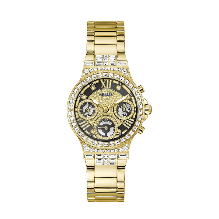 Guess Moonlight Diamonds Gold Dial Gold Steel Strap Watch for Women - GW0320L5