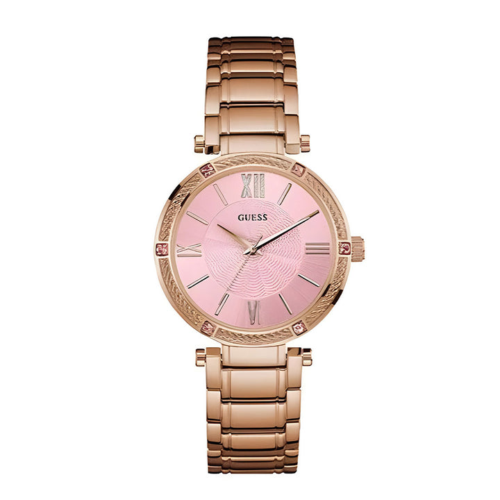 Guess Park Ave Quartz Rose Gold Dial Rose Gold Steel Strap Watch For Women - W0636L2