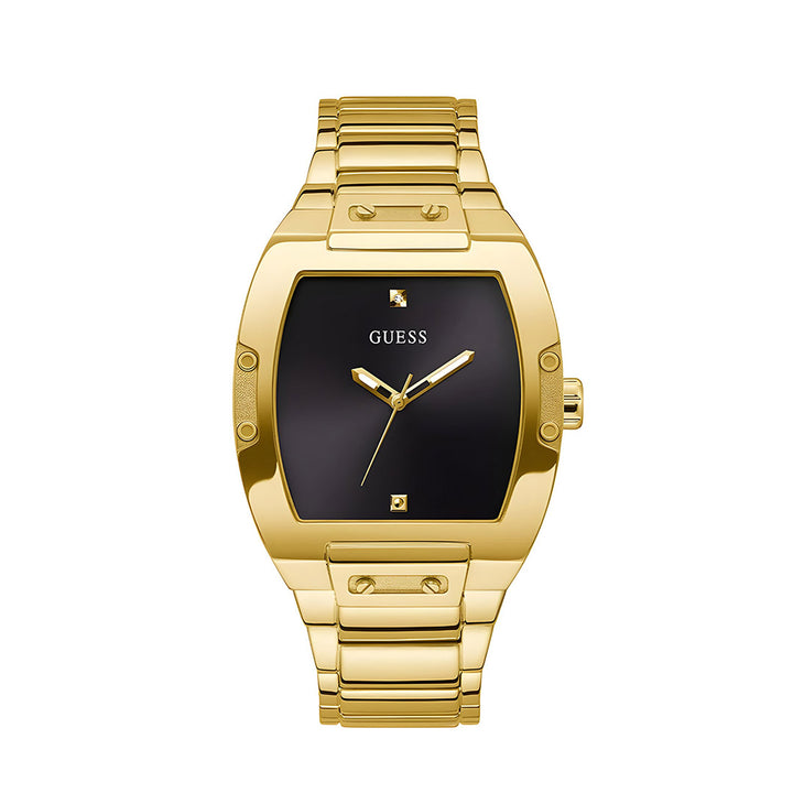 A genuine diamond dial keeps this phoenix on the rise. Featuring a gold-tone barrel shaped case with a black dial on a sleek 3-link bracelet.