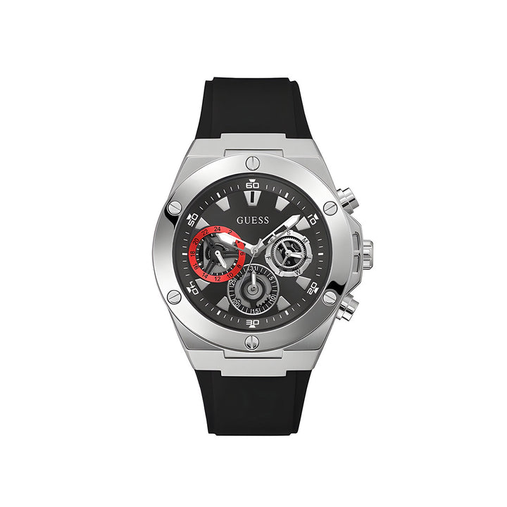 Guess Quartz Black Silicone Strap Black Dial 46mm Watch for Mens-GW0417G3