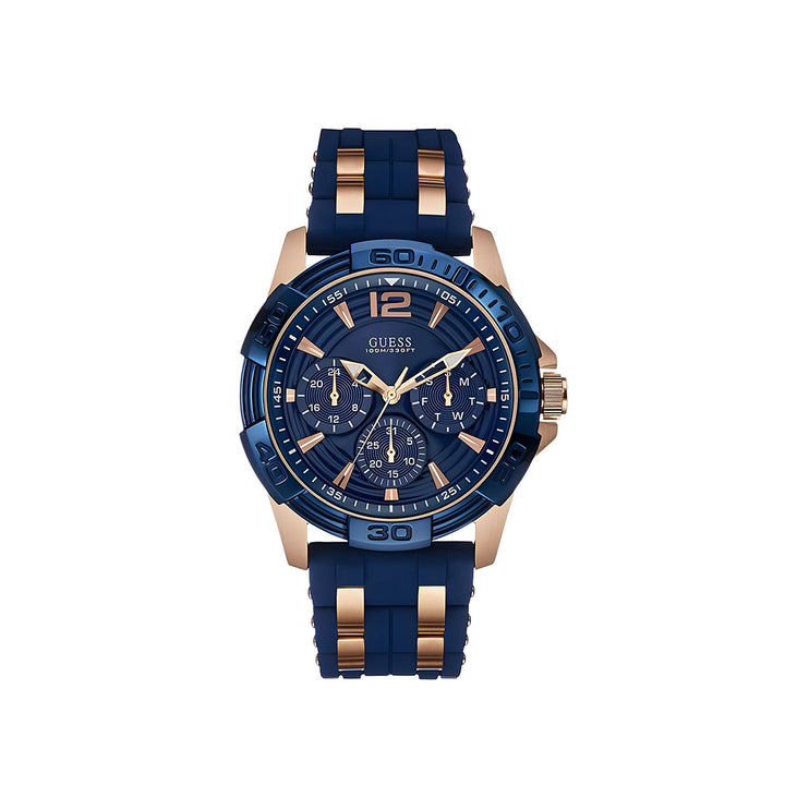 Guess Oasis Blue Dial Blue & Rose Gold Stainless Steel Strap Watch For Men - W0366G4
