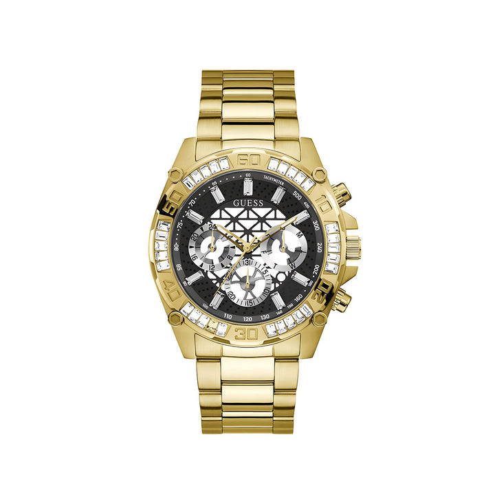 Guess Trophy Diamonds Black Dial Gold Steel Strap Watch for Men - GW0390G2