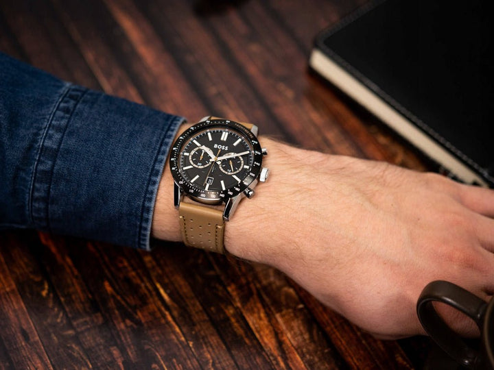 Hugo Boss Allure Black Dial Brown Leather Strap Watch for Men - 1513964