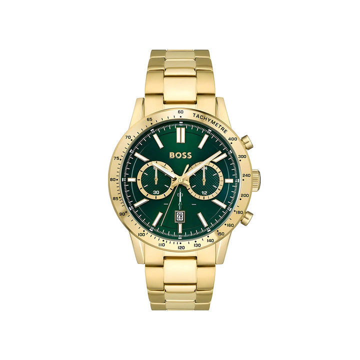 Hugo Boss Allure Chronograph Green Dial Gold Steel Strap Watch for Men - 1513923