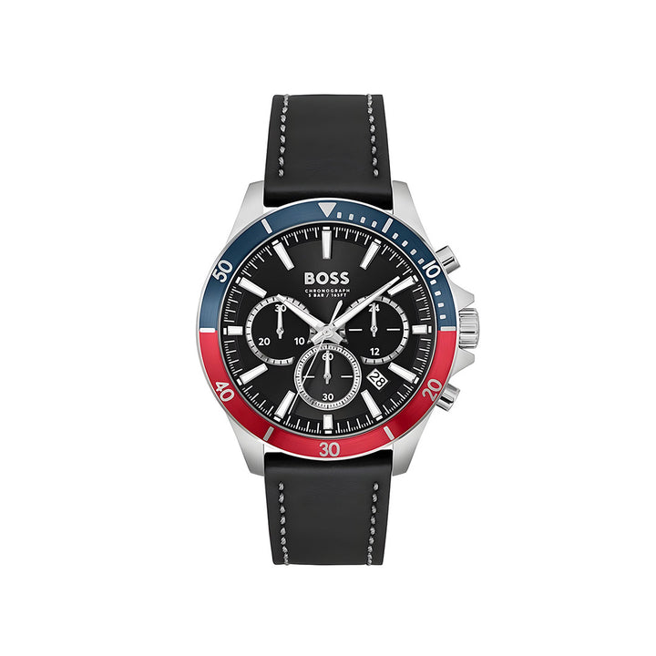 Hugo Boss Troper Chronograph Black Dial Black Leather Strap Watch For Men - 1514099