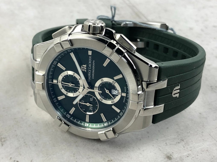 Maurice Lacroix Aikon Chronograph Green Dial Green Rubber Strap Watch for Men - AI1018-SS000-630-5