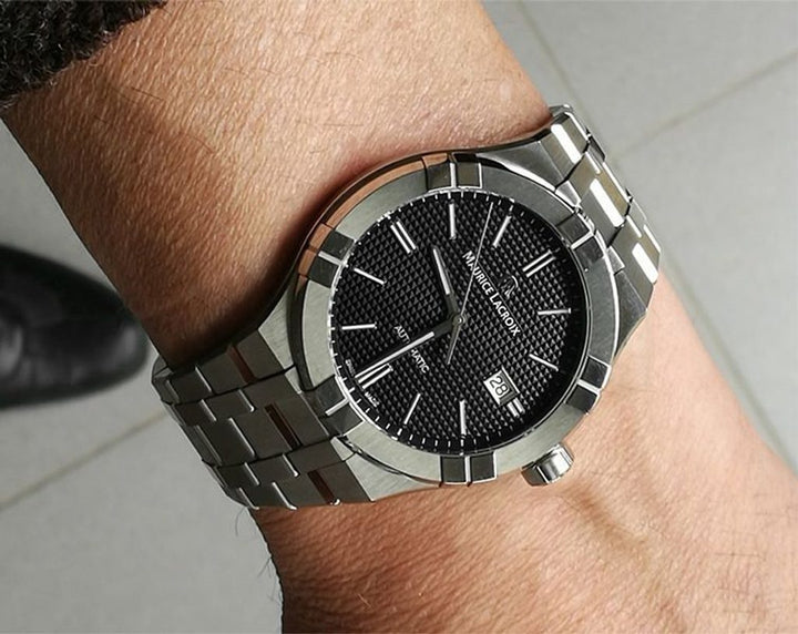 Maurice Lacroix Aikon Date Quartz Black Dial Silver Steel Strap Watch for Men - AI1108-SS002-330-1