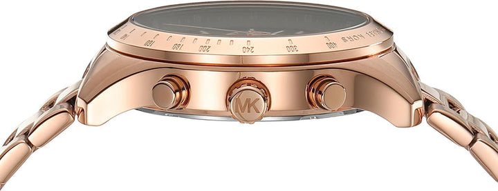 Michael Kors BERKLEY watch featuring a 40mm diameter case with a chronograph movement. Green sunray dial with rose gold-tone stainless steel bracelet