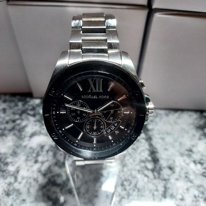 Michael Kors Brecken Chronograph Black Dial Silver Steel Strap Watch For Men - MK8847