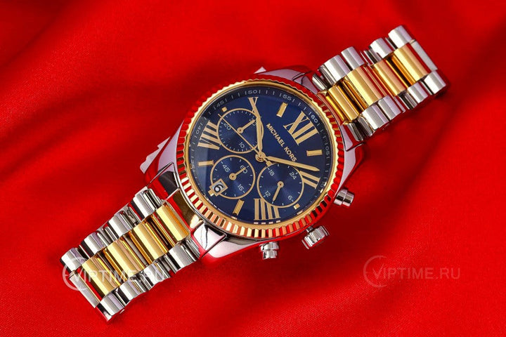 Michael Kors Lexington Chronograph Blue Dial Two Tone Steel Strap Watch For Women - MK7218
