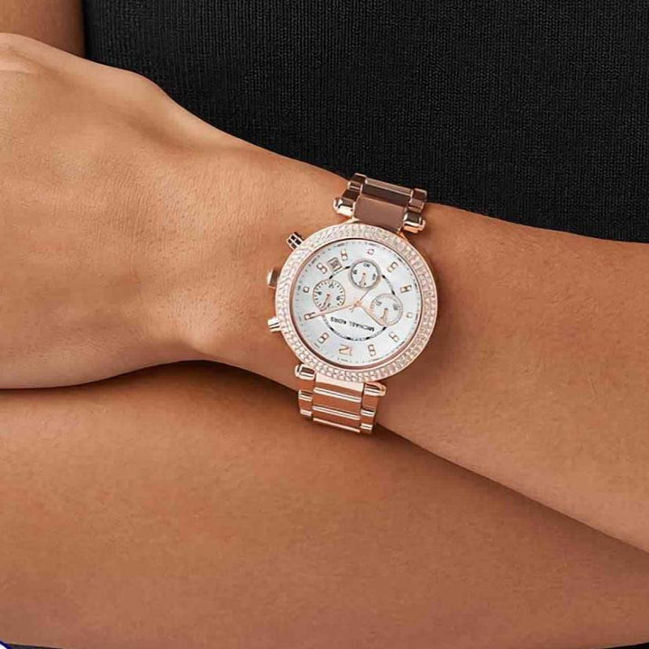 Michael Kors Parker White Dial with Diamonds Rose Gold Steel Strap Watch for Women - MK5491