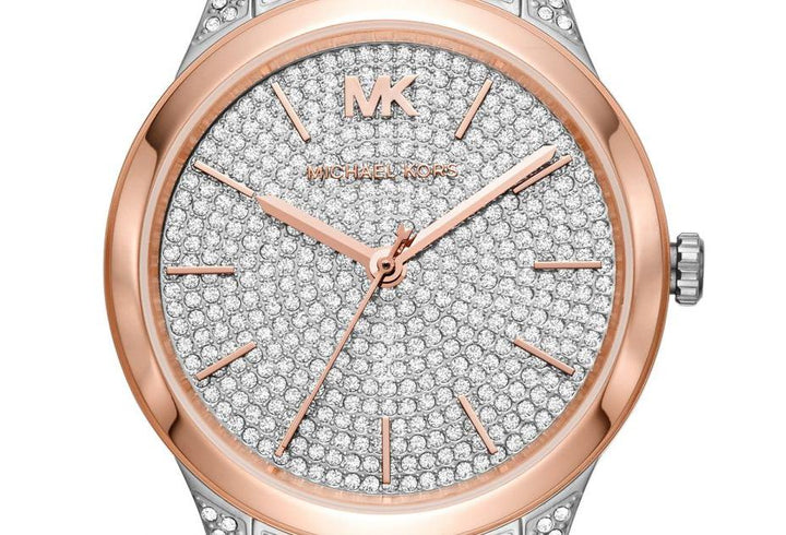 Michael Kors Runway Mercer Crystals Silver Dial Two Tone Steel Strap Watch For Women - MK6716