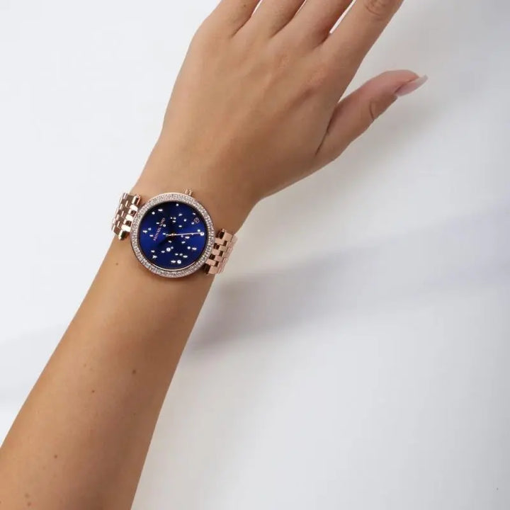 Michael Kors Darci Blue Dial Rose Gold Steel Strap Watch for Women - MK3728