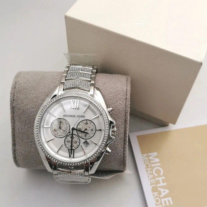 Michael Kors Whitney Chronograph Crystals Silver Dial Silver Steel Strap Watch For Women - MK6728