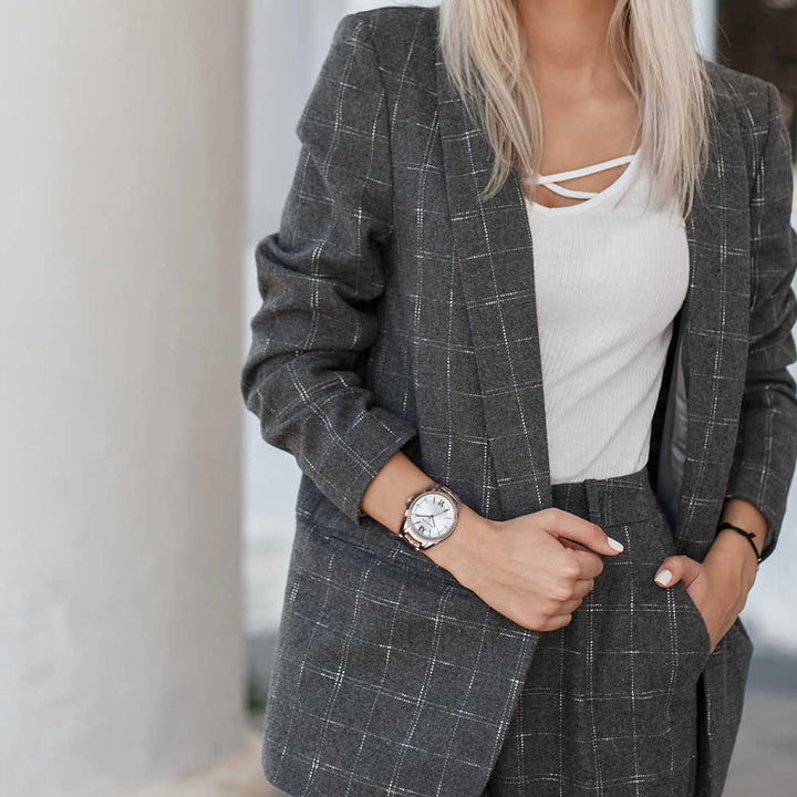 Modern sophistication. Defined by a chevron-link strap, our Whitney watch is crafted from radiant stainless steel that’s set with sparkling pavé crystals along the bezel. Consider it a luxe and lasting gift for someone special, or a statement finish to your everyday looks.