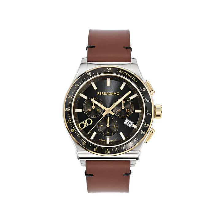 Salvatore Ferragamo 1927 Chrono Analog Black Dial Brown Leather Strap Watch for Men - SFKZ00323