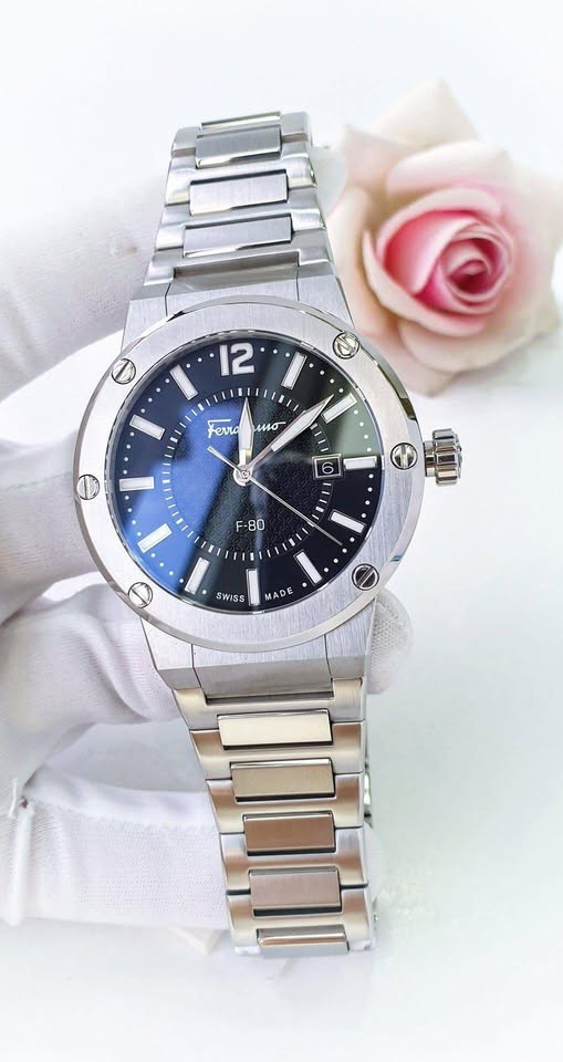The Salvatore Ferragamo 1927 Chrono Black Dial Silver Steel Strap Watch for Men - SFHY02925 combines impeccable style with precision timekeeping. The sleek black dial and silver steel strap create a sophisticated look, while the chronograph feature allows for precise measurement of time. Enhance your ensemble and stay on schedule with this luxurious watch.
