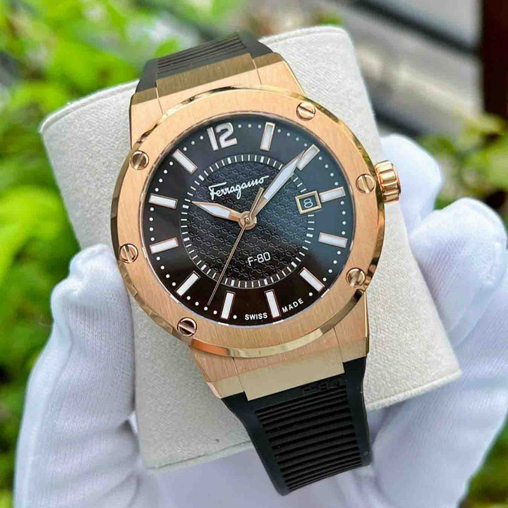 Salvatore Ferragamo F-80 Classic Black Dial Black Rubber Strap Watch for Men - SFHY02522
