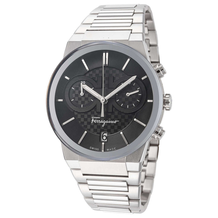 Salvatore Ferragamo Sapphire Chrono Black Dial Silver Steel Strap Watch for Men - SFME00321