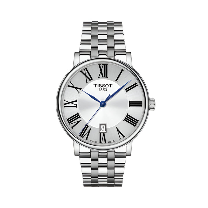 This Tissot Carson watch features a premium silver dial and a silver steel strap, making it a sleek and stylish choice for men. With its reliable craftsmanship and elegant design, this timepiece is perfect for any occasion, providing both functionality and sophistication. Upgrade your wardrobe with this Tissot watch.