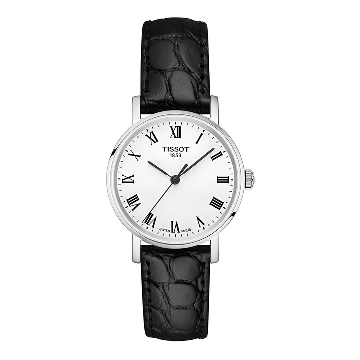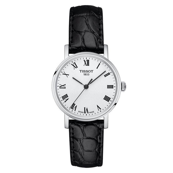 Tissot Everytime Small White Dial Black Leather Strap Watch For Women - T109.210.16.033.00
