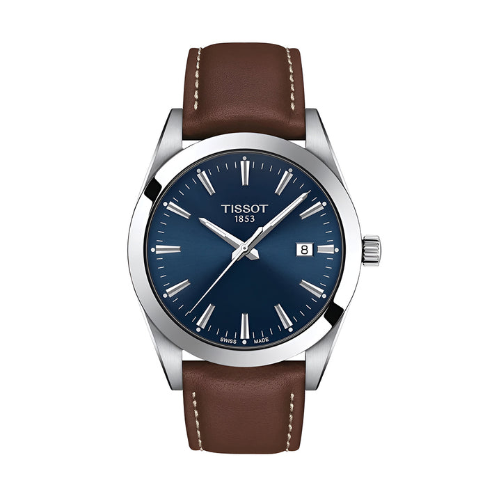 Tissot Gentleman Blue Dial Brown Leather Strap Watch For Men - T127.410.16.041.00