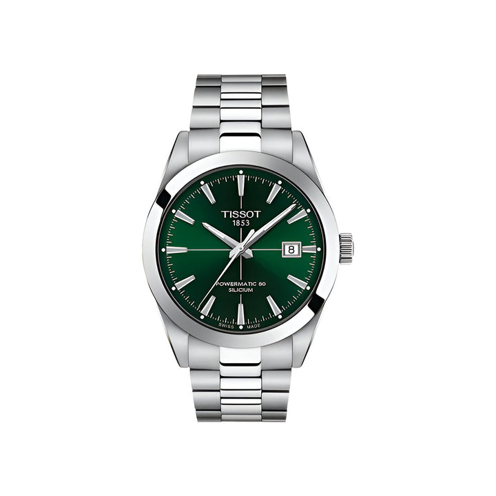 Tissot Gentleman Powermatic 80 Silicium Green Dial Silver Steel Strap Watch For Men - T127.407.11.091.01
