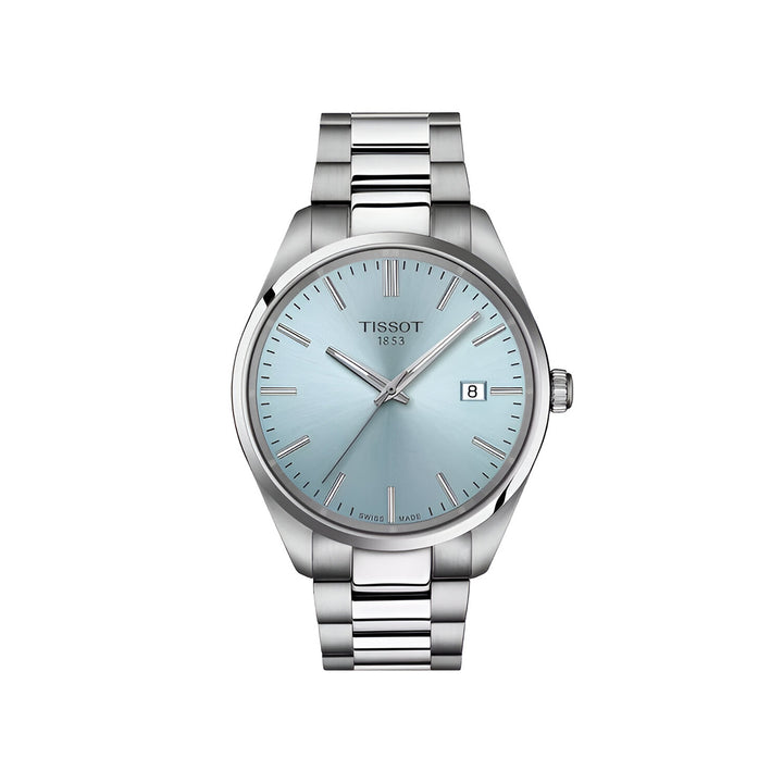 The Tissot PR 100 Quartz 40mm T150.410.11.351.00 is an elegant men's watch designed for modern men who appreciate Swiss quality. It features an F06.115 quartz movement with EOL function for precision and reliability. The silver-colored envelope and bracelet, made of durable 316L stainless steel, blend beautifully with the blue dial. Sapphire glass protects the dial from scratches, and the 100-meter water resistance makes this model ideal for both everyday wear and water activities.