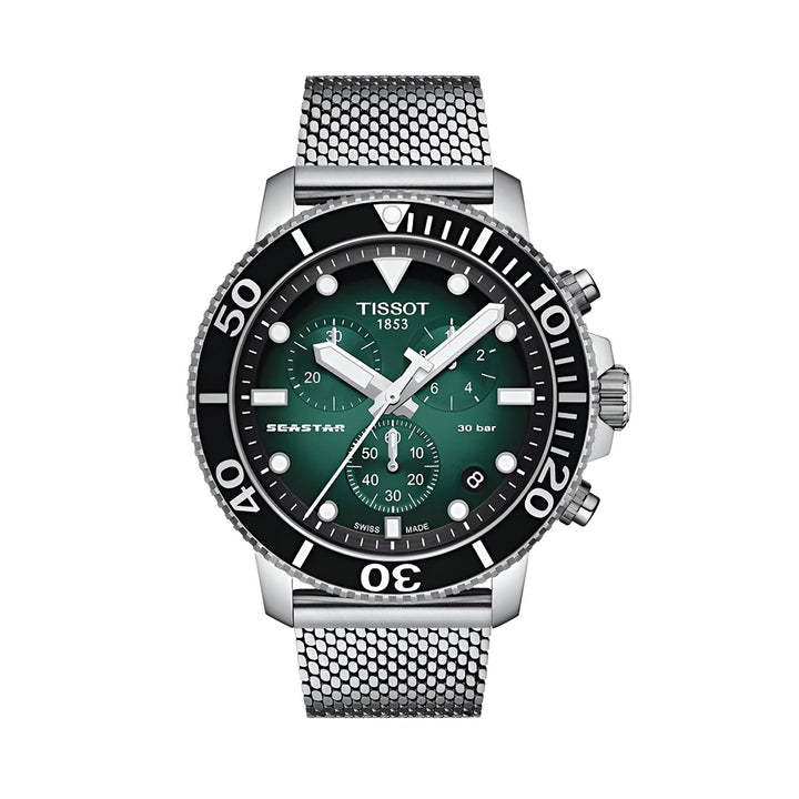 Tissot Seastar 1000 Chronograph Green Dial Silver Mesh Bracelet Watch For Men - T120.417.11.091.00