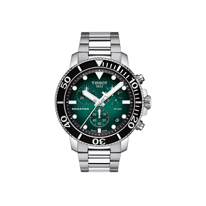Tissot Seastar 1000 Chronograph Green Dial Silver Steel Strap Watch For Men - T120.417.11.091.01